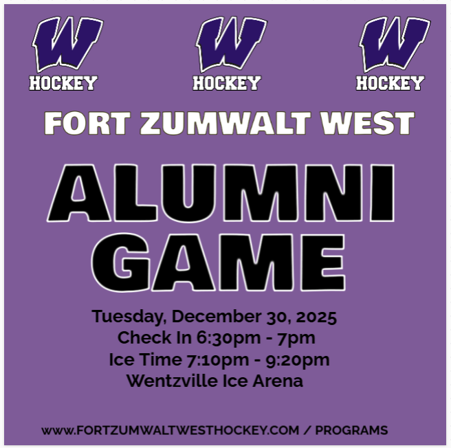 The FZW Hockey Alumni Game is Tuesday, December 30, 2025 7:10 pm at Wentzville Ice Arena. We have two sheets of ice back to back that we will be using for the Alumni this year. Spread the word to any and all FZW Hockey Alum. The more the merrier!